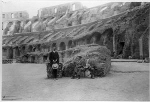 L.L. Nunn (center) and several unidentified colleagues on a trip to Rome, in the late 1880s or early 1890s. This is the Coliseum.