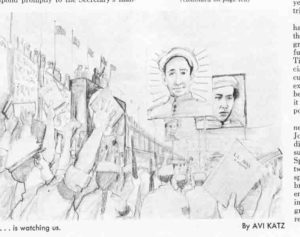 Artist Avi Katz SP66 BB67 TA68 created this whimsical Nunnian illustration for the June 1969 issue of the Newsletter.