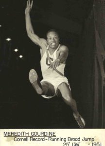 Meredith Gourdine graduated from Brooklyn Technical High School and studied at Cornell University, where he competed in the sprints, hurdles and long jump, and was selected for membership in the Quill and Dagger society. One of the first African Americans at CBTA, Meredith also helped recruit minority applicants for the TASPs. At the 1952 Summer Olympics in Helsinki he won a silver medal for the long jump, one and a half inch short of Jerome Biffle’s gold medal jump.
